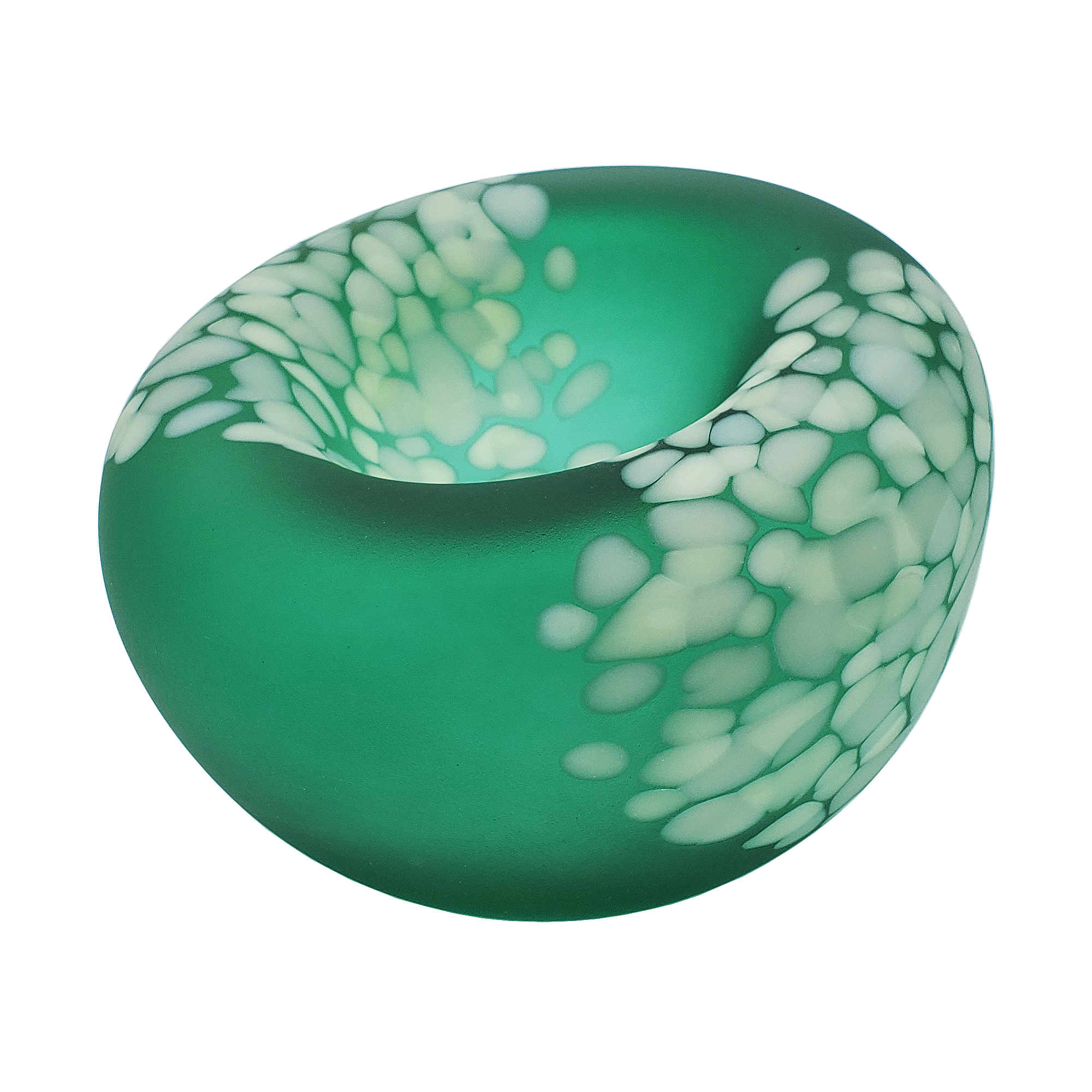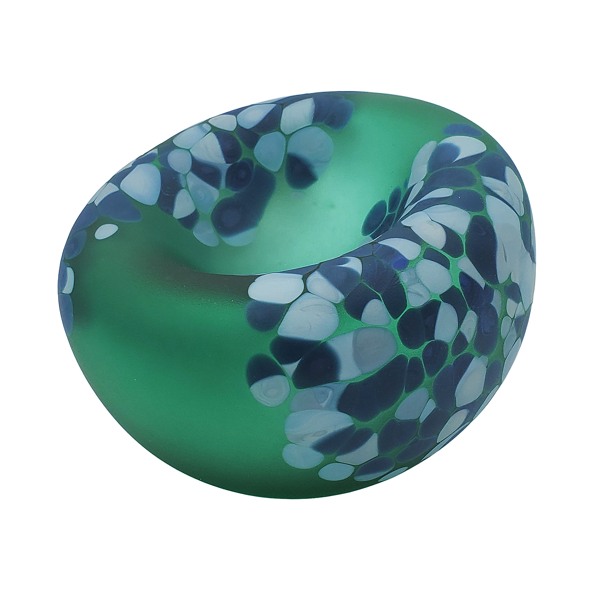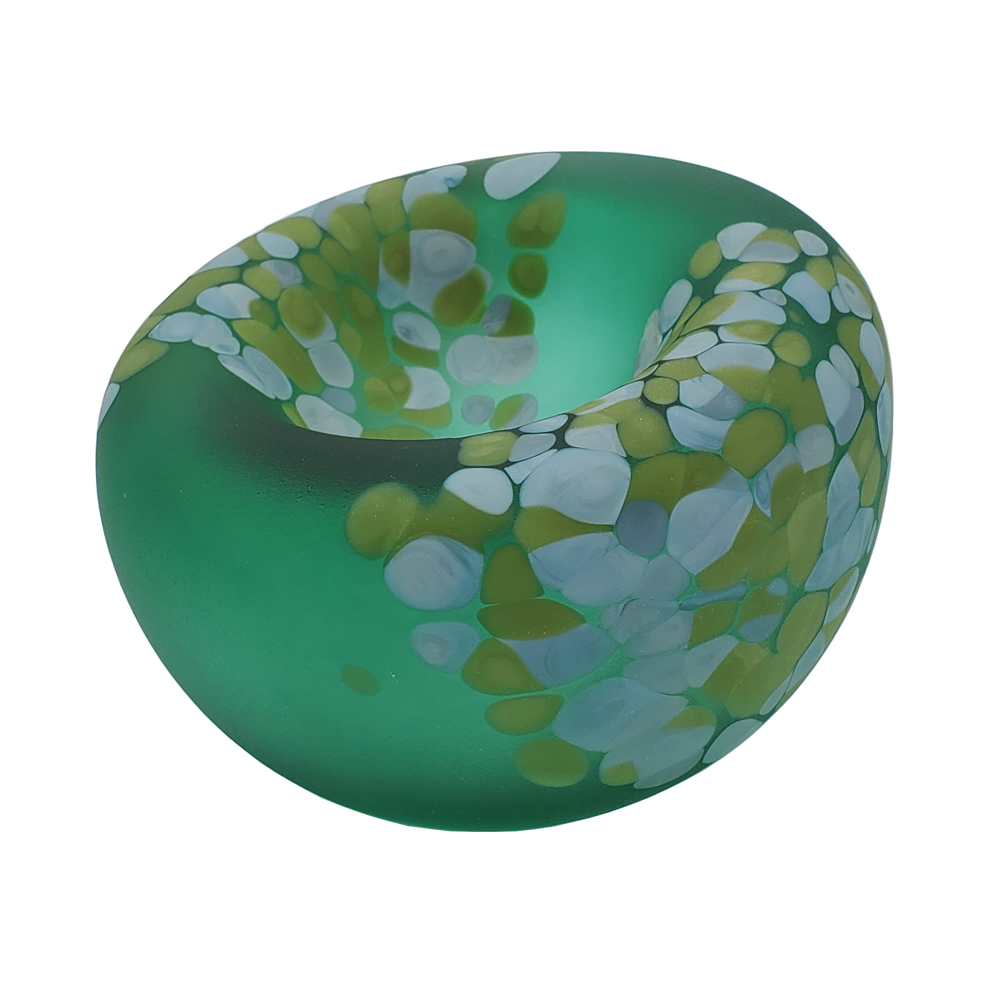 Alexi Hunter creates a selection of sunk bowls. His Frit style uses a variety of colour combinations that organically splash around the bowl like jellies in a bowl.