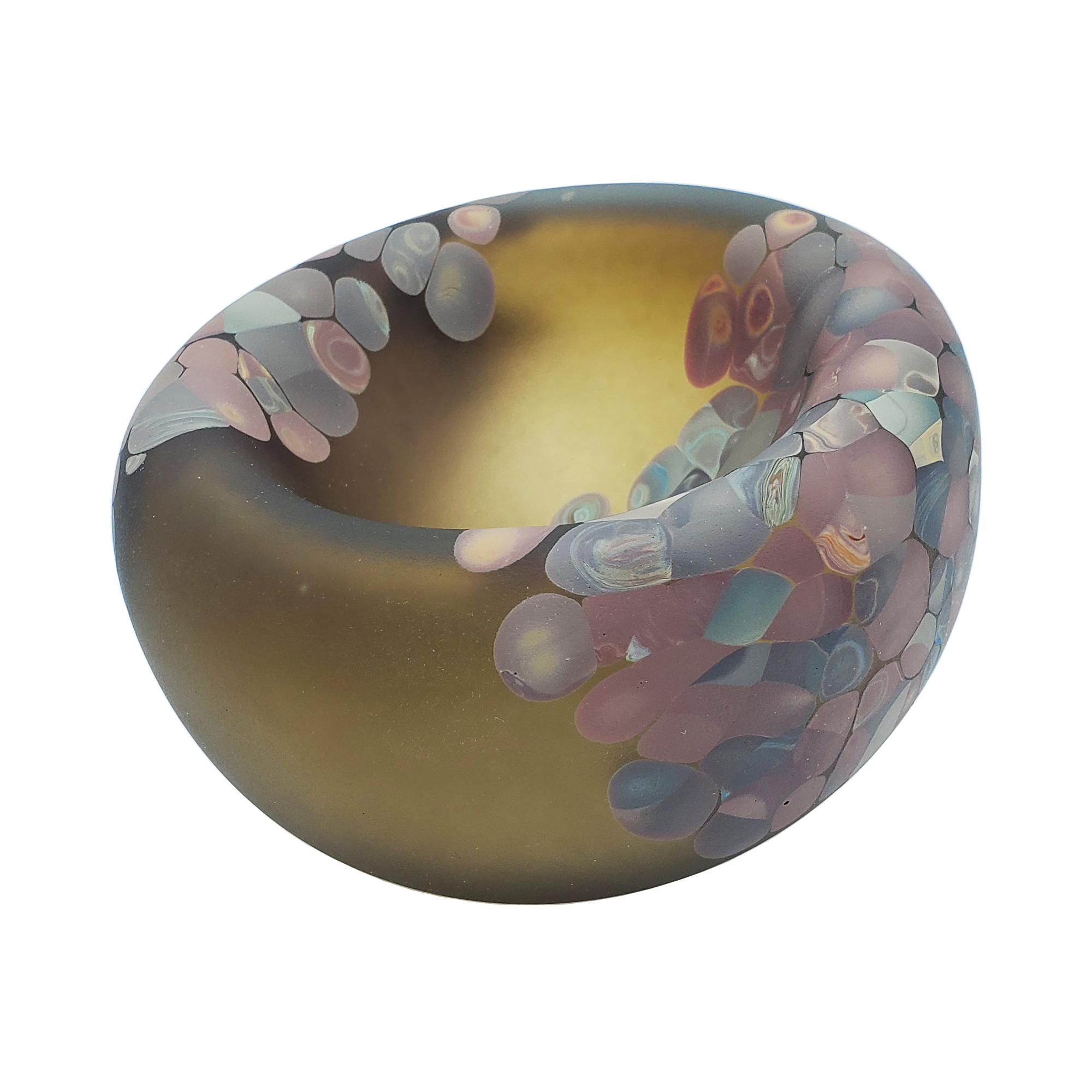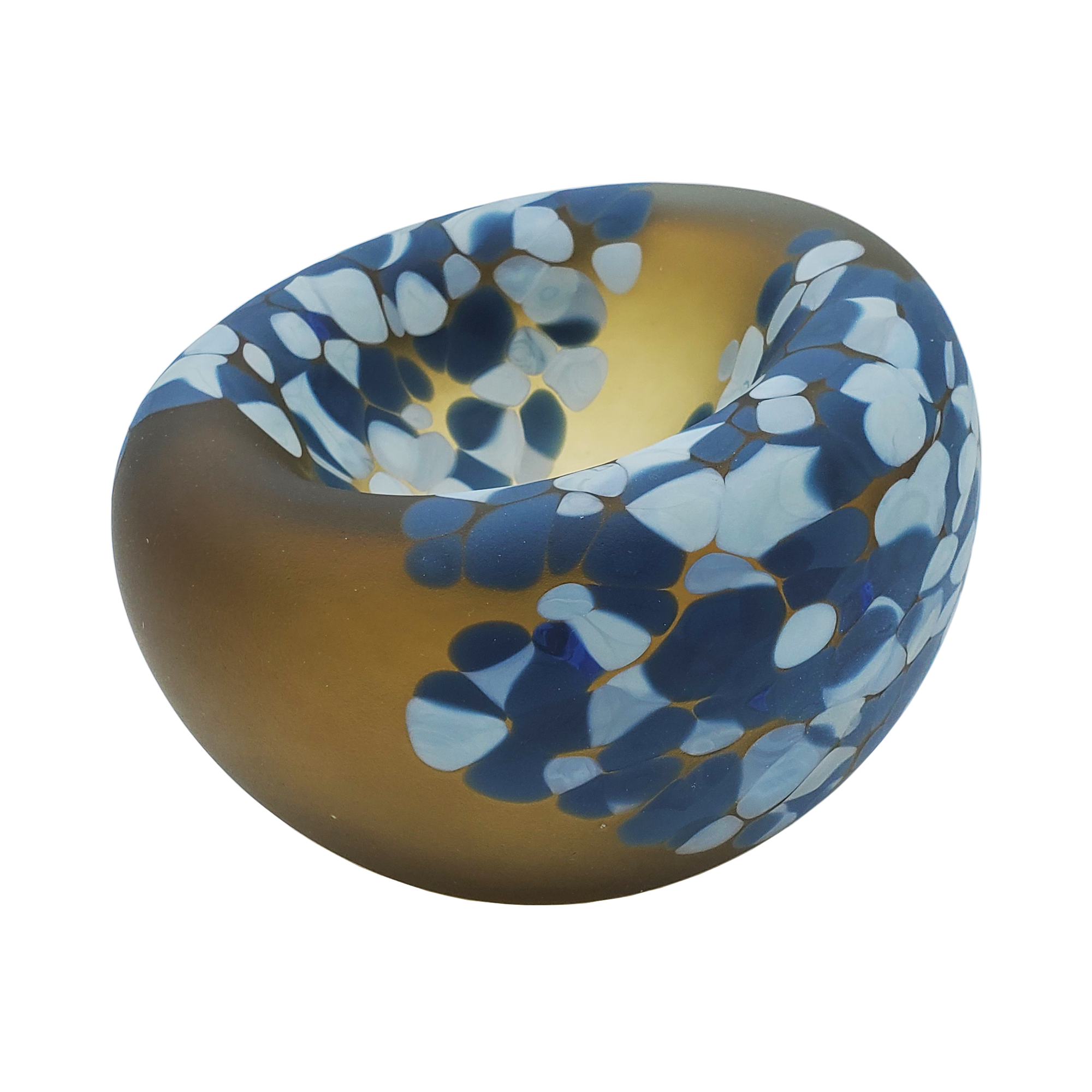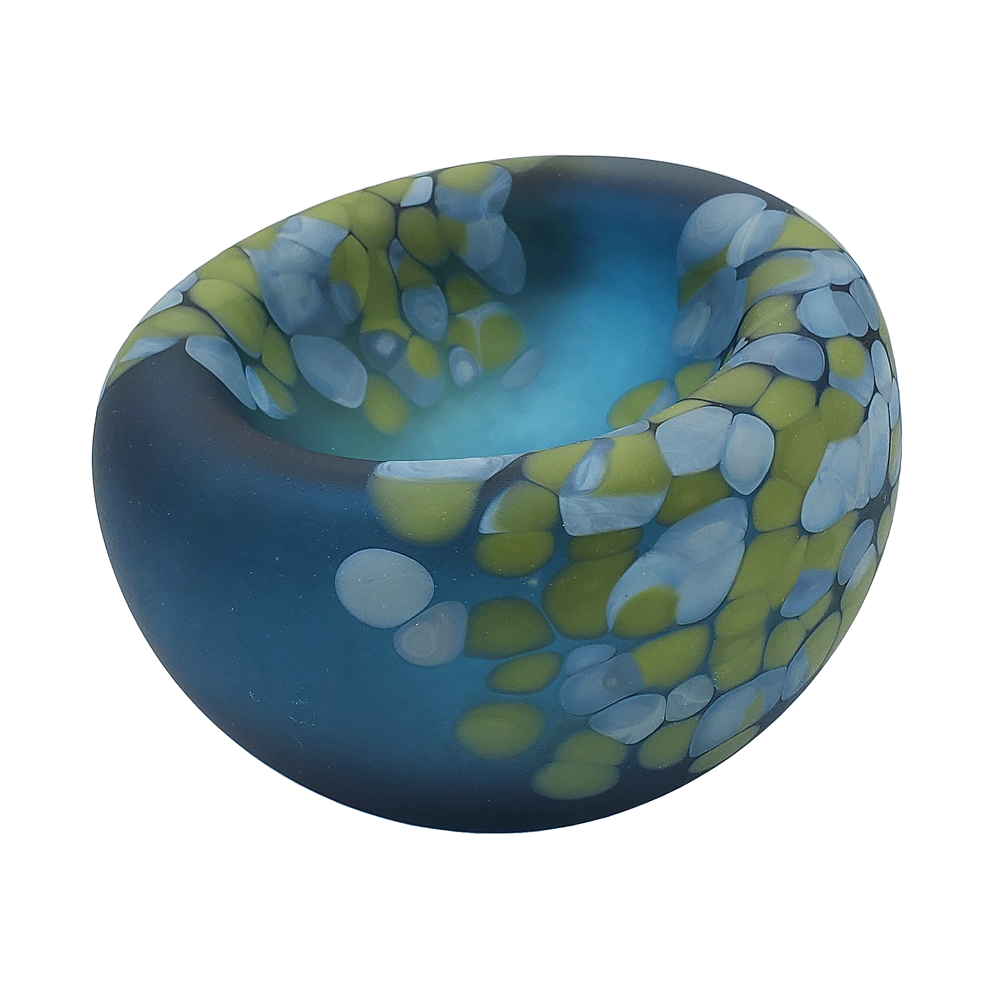 Alexi Hunter creates a selection of sunk bowls. His Frit style uses a variety of colour combinations that organically splash around the bowl like jellies in a bowl.