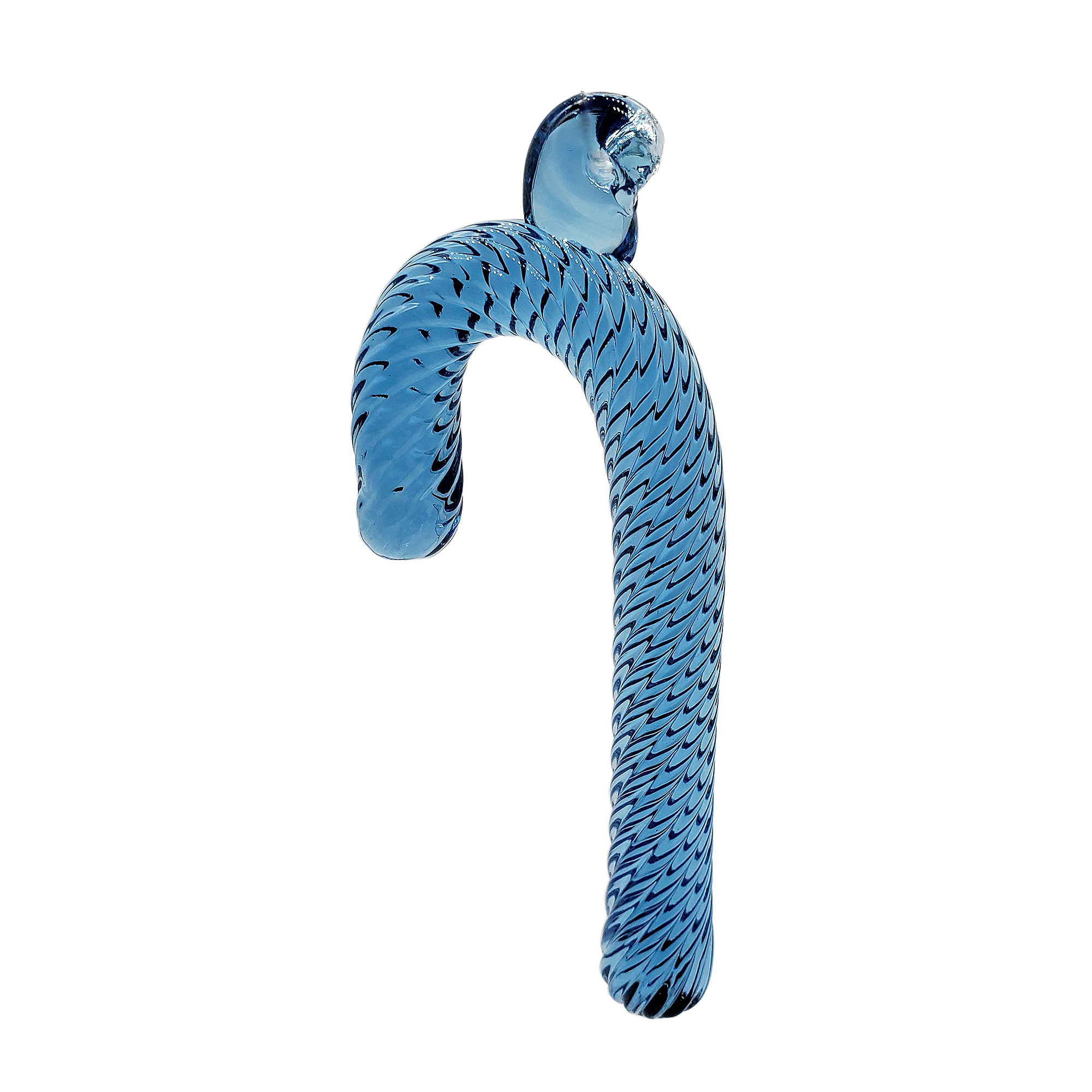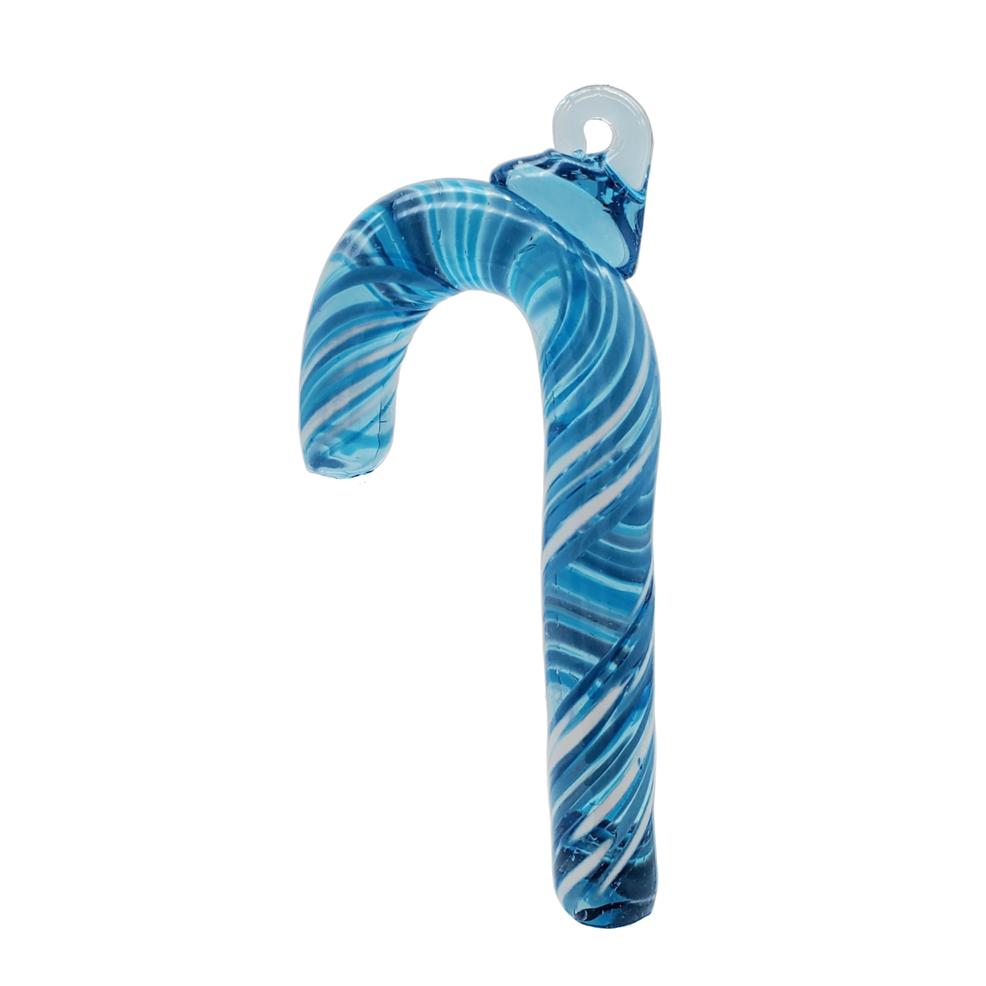 Mariel These Candy Cane ornaments give a stylish and unique twist to traditional holiday decorations. Made from 100% recycled glass, each one will have it's own unique colour depth, always in blue but each one different. These hand blown glass candy canes make the perfect gift or stocking stuffer for your greenest friend.