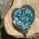 Each of these vibrant, solid glass hearts features a carefully sculpted interior design, skillfully crafted by Alexi. At the center of every heart, a perfectly placed bubble is captured, adding a unique and mesmerizing detail. Available in a beautiful assortment of bright colours, these handmade pieces are a stunning display of craftsmanship and creativity.